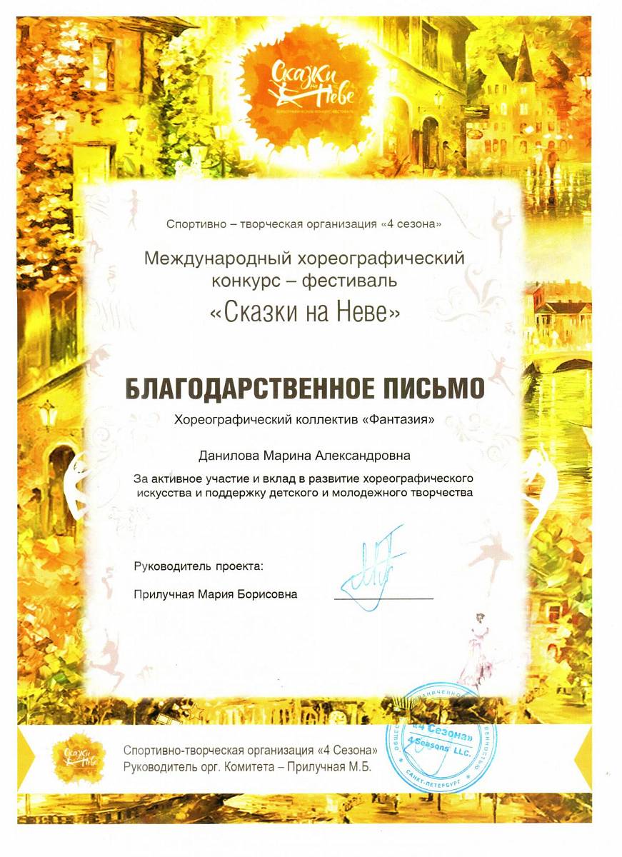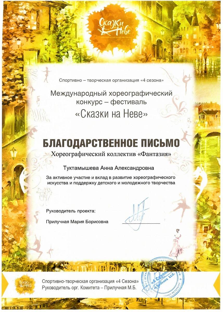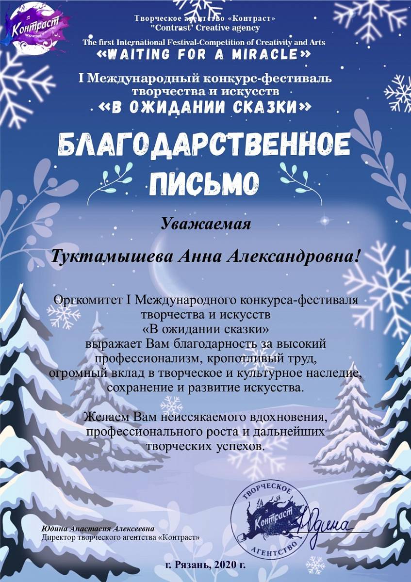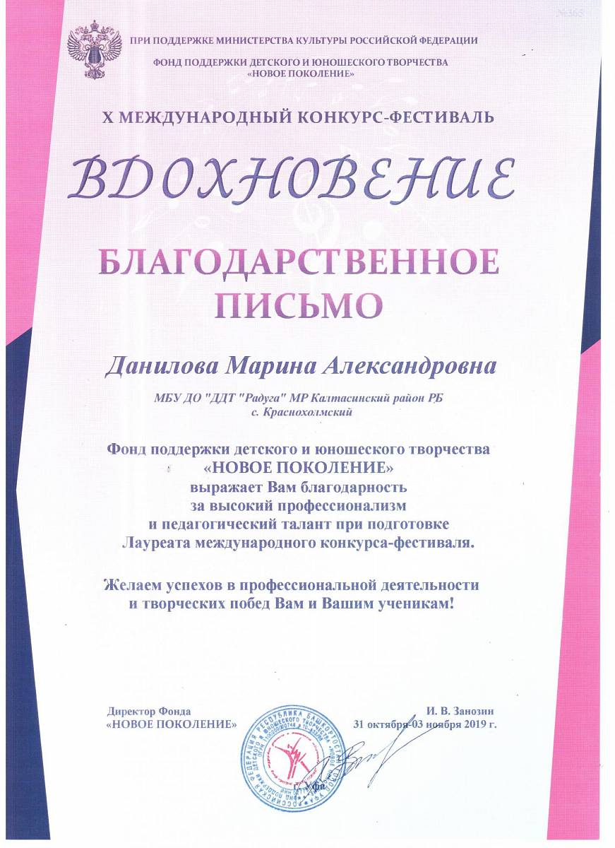 Благодарность Анне Туктамышевой и Марине Даниловой