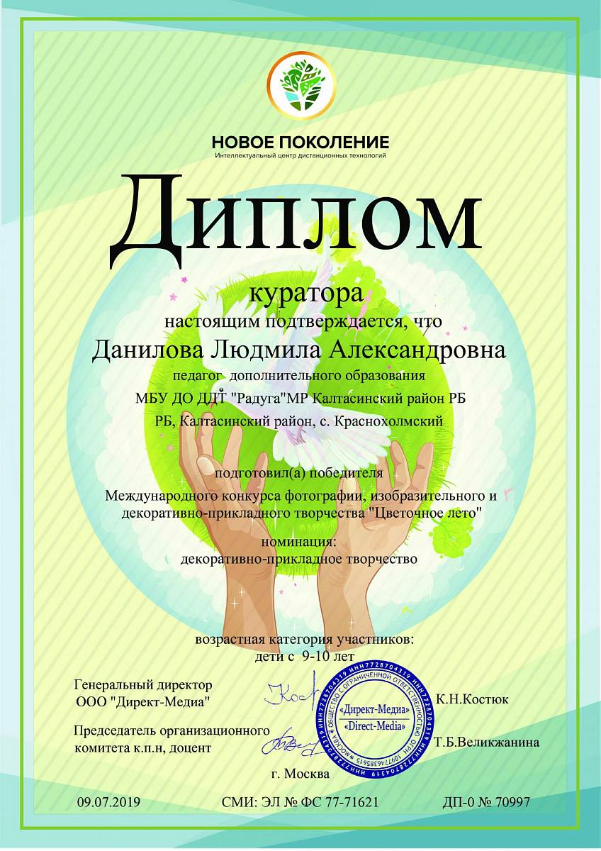 Вы внесли большой вклад в развитие детского и молодежного творчества. Только благодаря Вашей творческой деятельности и высокой профессиональной подготовке, им удалось добиться такого успеха. Молодые дарования — одна из основных наших ценностей, и их поддержка — задача всего общества. Надеемся, что, объединившись вместе в деле воспитания подрастающего поколения, мы сможем сделать будущее детей счастливым! Выражаем Вам искреннюю признательность за добросовестное отношение и мастерство в подготовке участников. Большое Вам спасибо, надеемся на дальнейшие дружеские отношения и плодотворное сотрудничество!