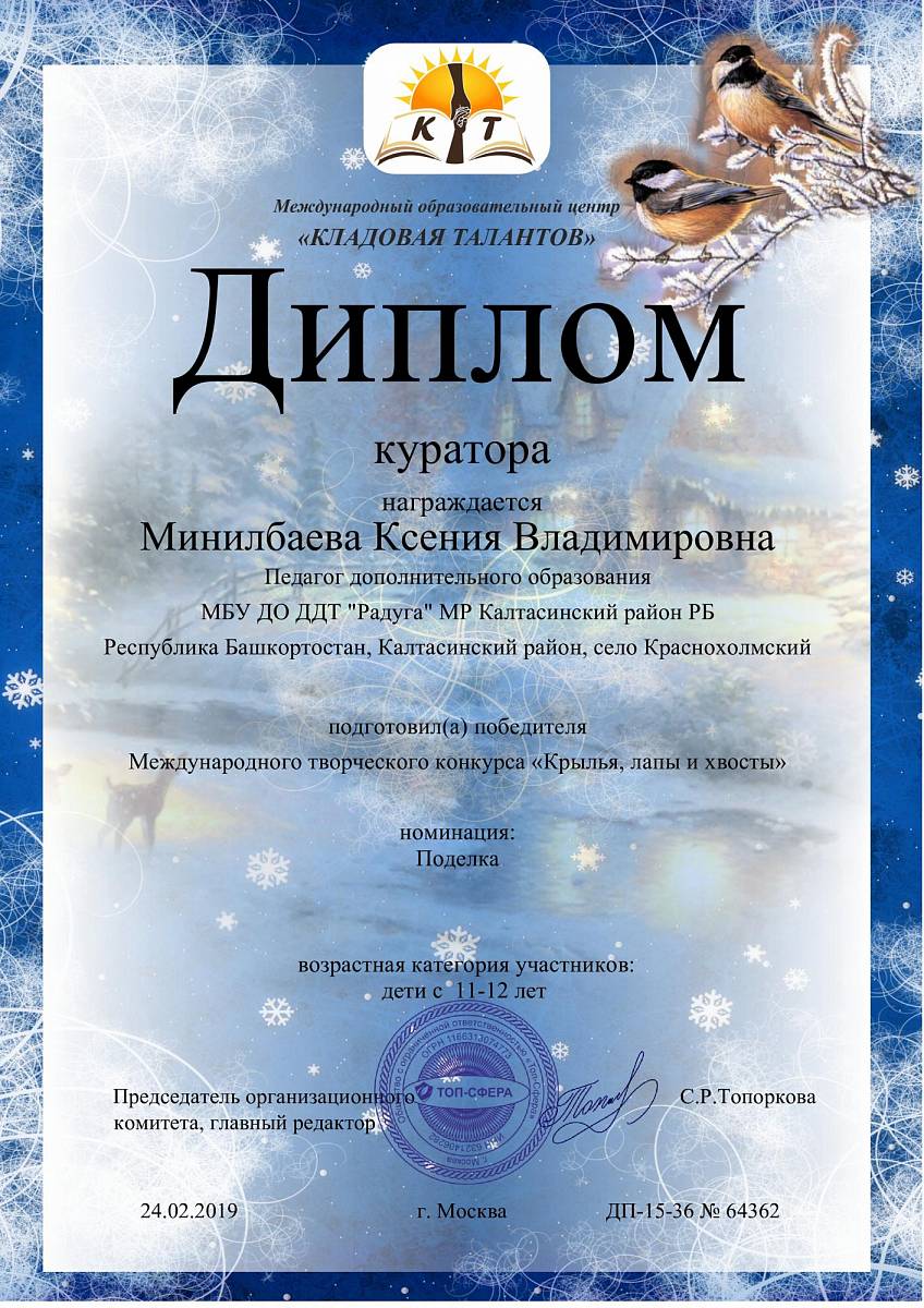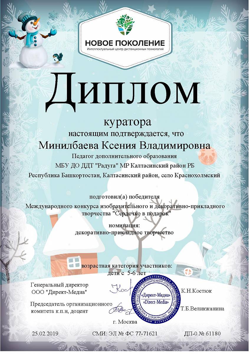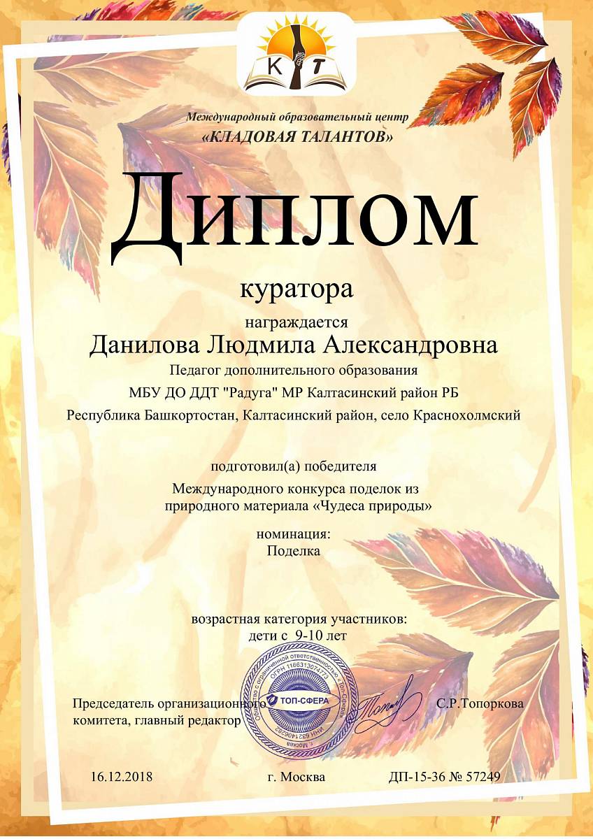 Примите благодарность за вклад в разностороннее развитие детей и подростков Республики Башкортостан! Желаем Вам творческих успехов, профессионального роста и процветания!