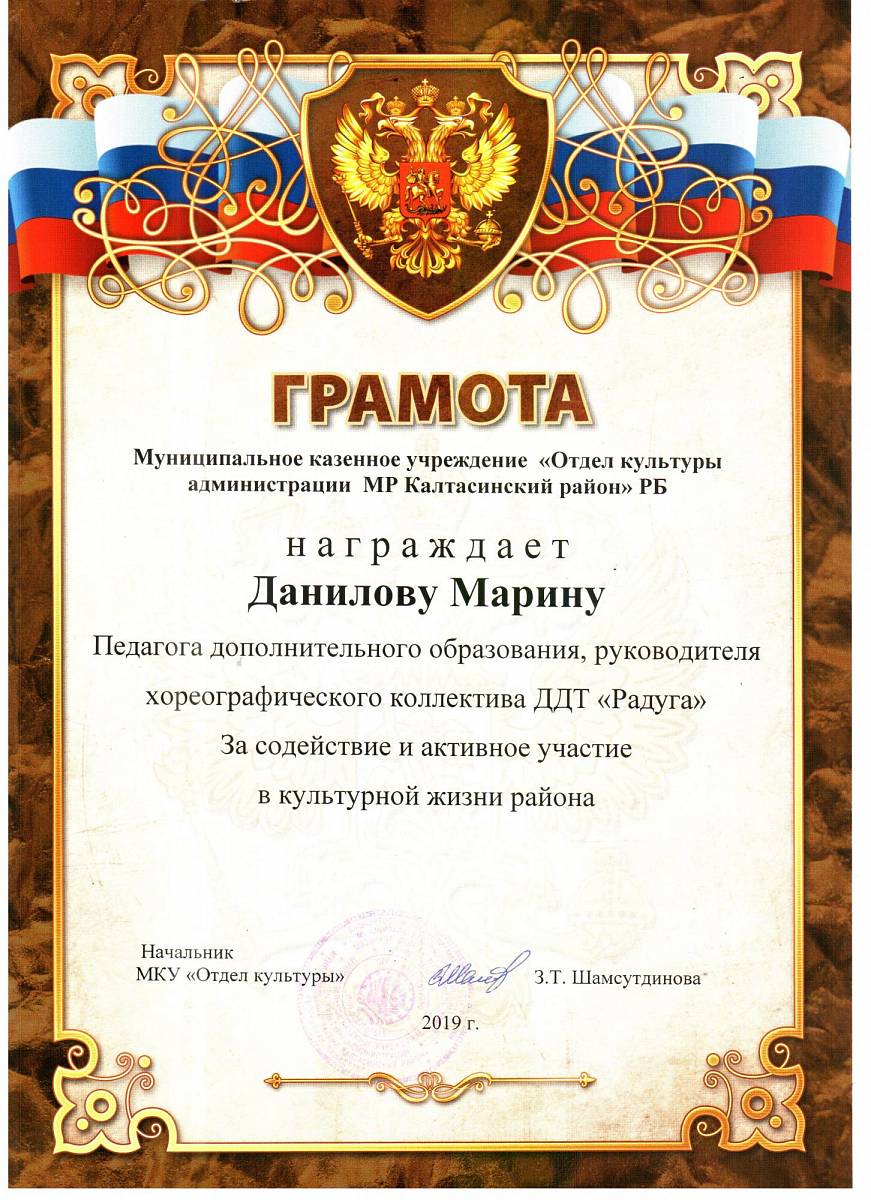 Руководителям Хореографического коллектива "Фантазия" МБУ ДО ДДТ "Радуга" с.Краснохолмский Калтасинского района РБ Даниловой М.А. и Туктамышевой А.А..
