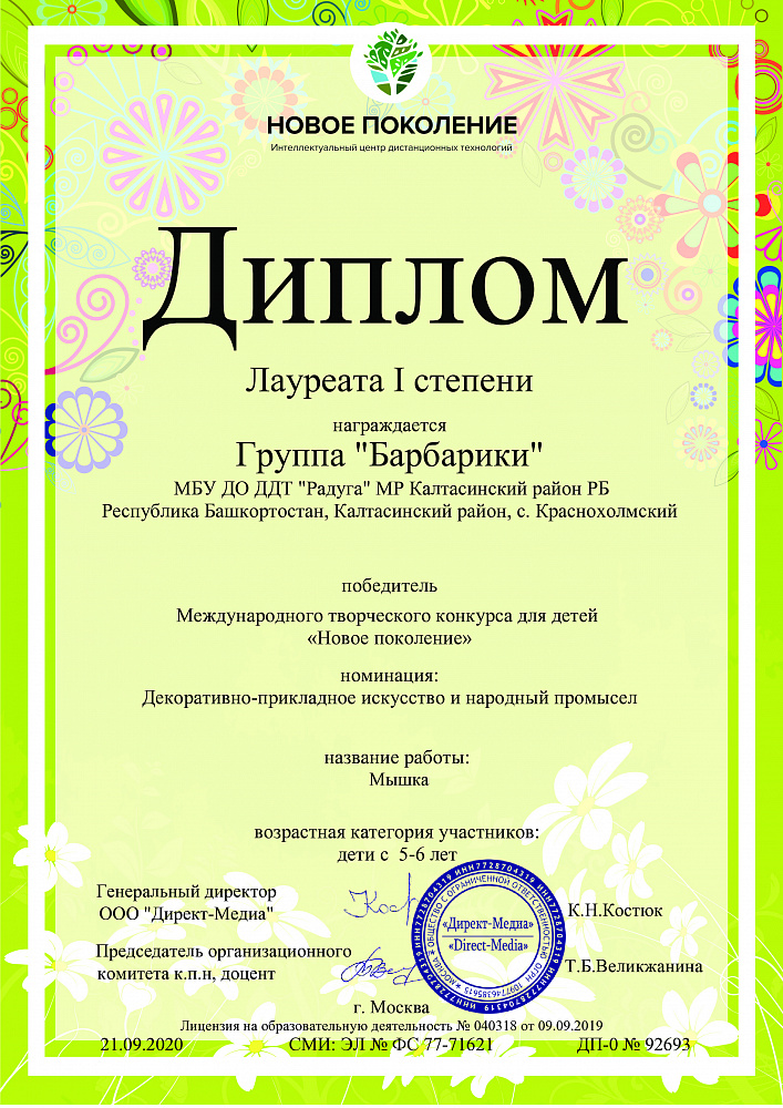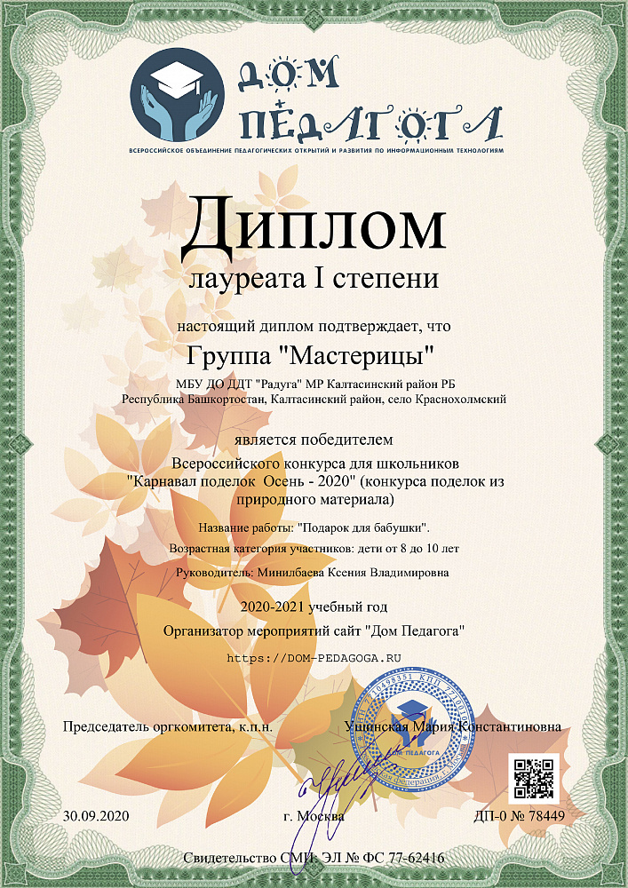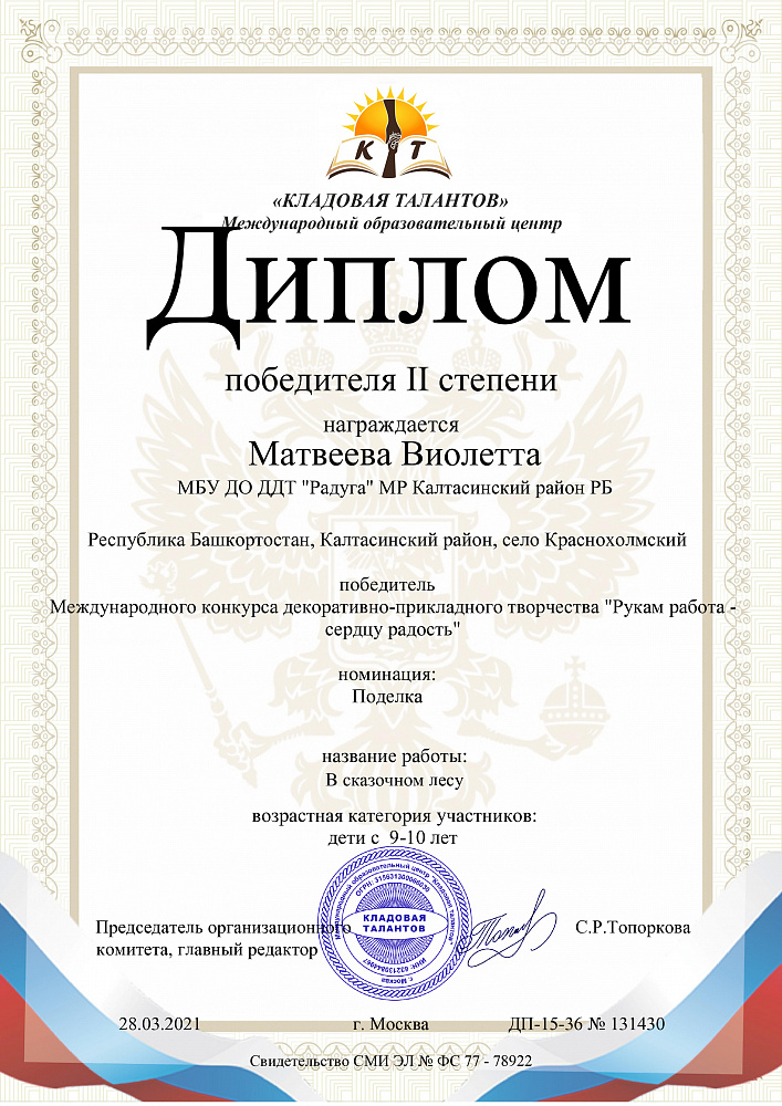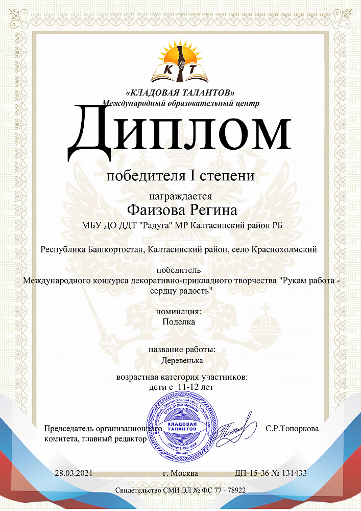 Муниципальное бюджетное учреждение дополнительного образования Дом детского творчества "Радуга" МР Калтасинский район РБ