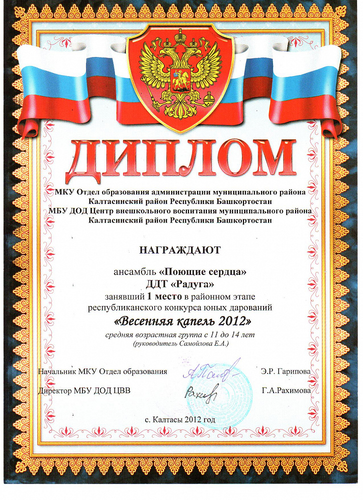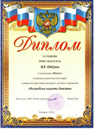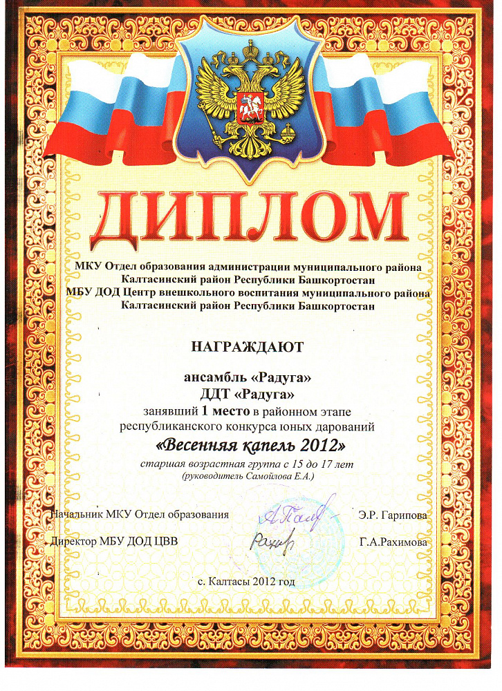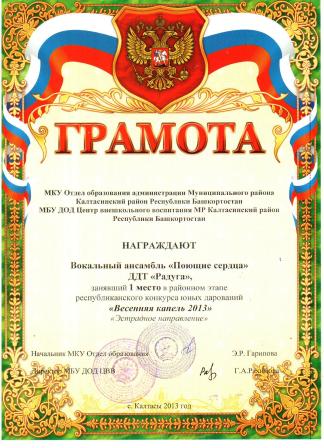 Муниципальное бюджетное учреждение дополнительного образования Дом детского творчества "Радуга" МР Калтасинский район РБ