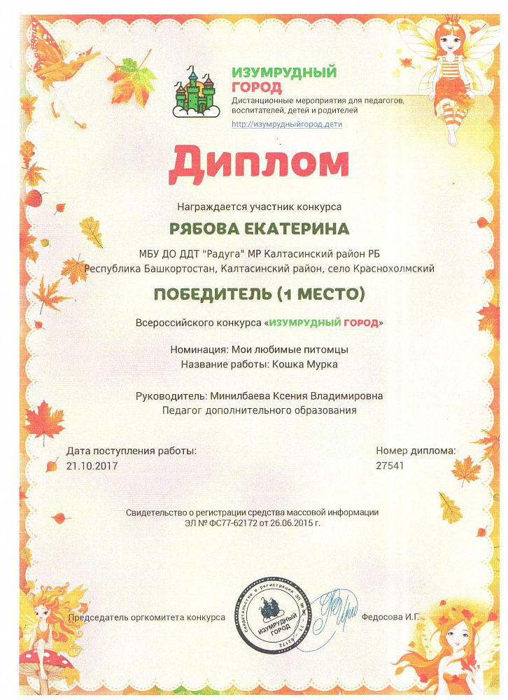 Муниципальное бюджетное учреждение дополнительного образования Дом детского творчества "Радуга" МР Калтасинский район РБ