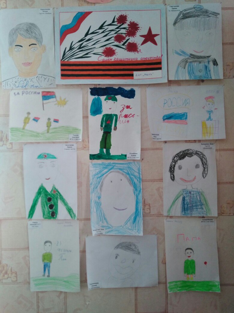 Ко Дню защитника Отечества в Доме детского творчества проходит множество мероприятий. Одним из самых любимых для воспитанников студии "Сказка" является рисование портретов своих пап и дедушек. В этом году ребята подготовили рисунки и вместе с педагогом оформили выставку своих работ под названием "Мой любимый папа!".
