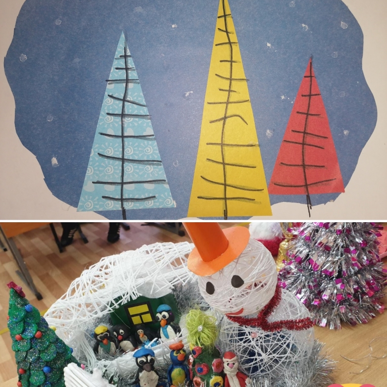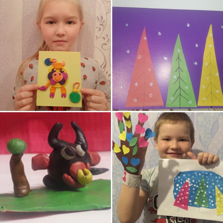 Мы активно продолжаем подготовку к Новому году и создаём волшебное настроение себе и окружающим. Посмотрите, какие чудесные символы наступающего года слепили наши ребята из пластилина! А наши новогодние ёлочки просто загляденье!