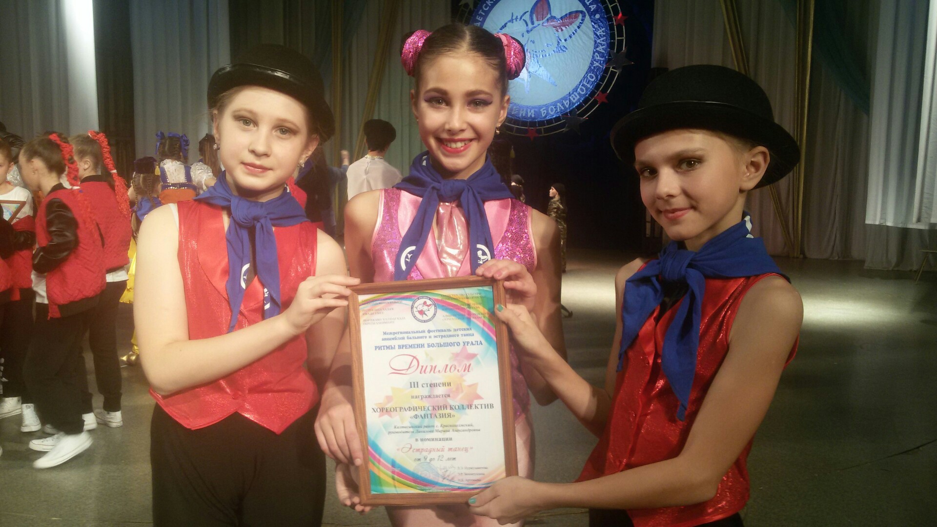 С 1 по 3 ноября 2017 года в городе Нефтекамске прошел Межрегиональный фестиваль ансамблей бального и эстрадного танца "Риты времени Большого Урала", в нем принимали участие 27 коллективов со всех уголков Башкортостана, в том числе и дети из хореографического коллектива "Фантазия"(средняя группа №1,14 человек), которые представили на суд зрителей и жюри 2 танца: "Детективная история" и "Лунатики", обе композиции были тепло встречены гостями фестиваля. Наш коллектив был награжден Дипломом 3 степени в номинации "Эстрадный танец"! Поздравляем всех участниц коллектива и их руководителя Данилову Марину Александровну с этой победой! Желаем вам творческого роста и достижения новых побед!!!