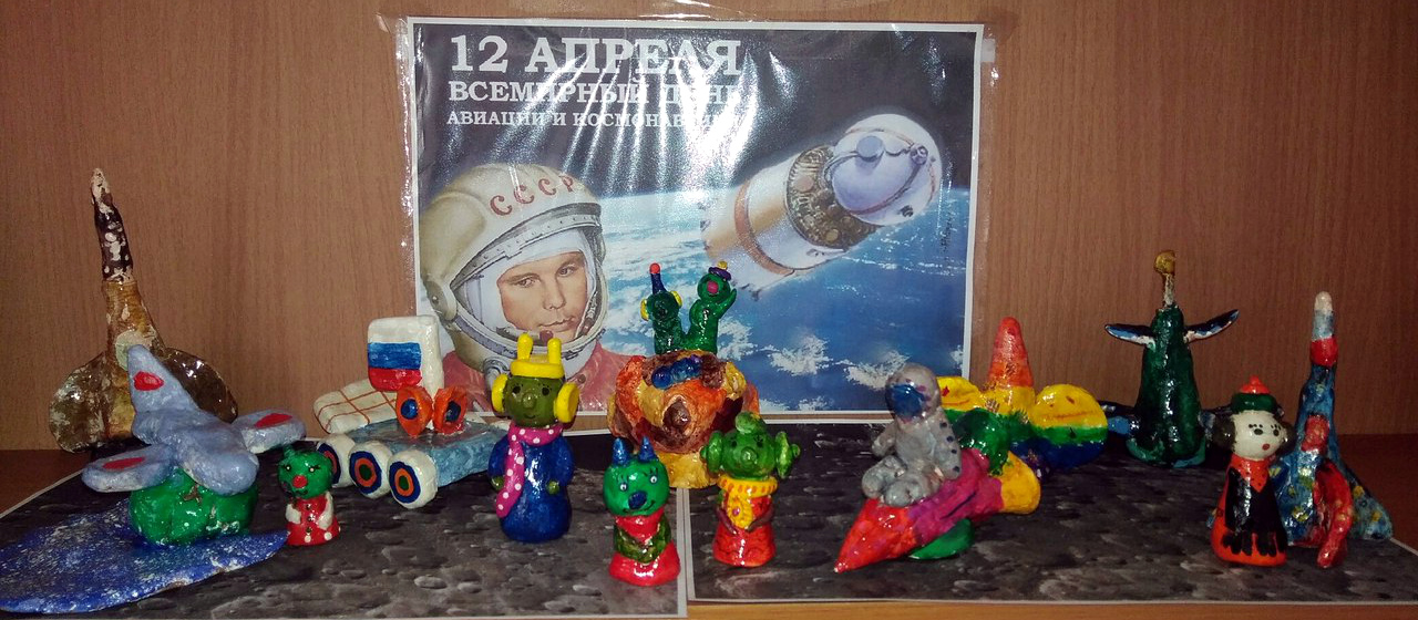 В апреле мысли людей намного чаще обращаются к теме космоса. Вот и обучающиеся студии "Сказка" из Младшей 1 и Младшей 2 групп создали прекрасную коллективную работу под названием "Космические будни". Здесь представлены и всевозможные ракеты, луноход, и, конечно же, дружелюбные инопланетяне.