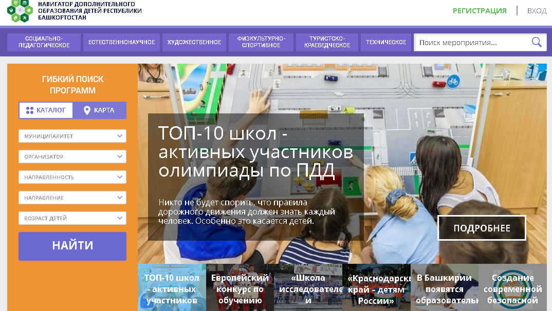 1. Выходим на сайт http://р02.навигатор.дети по ссылке и нажимаем «Регистрация».