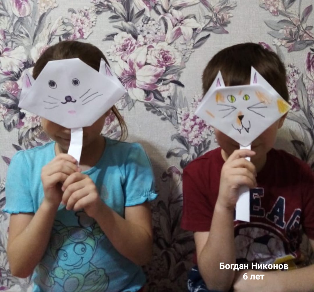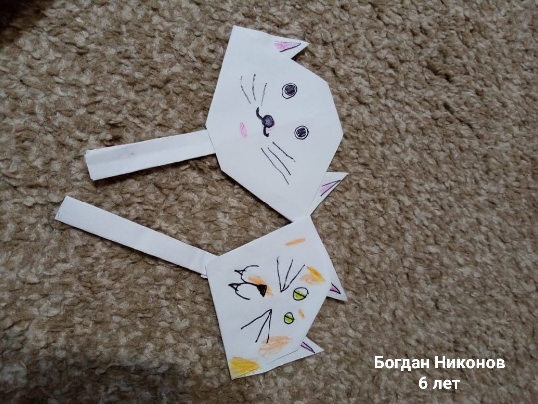 Второе занятие у малышей "Веселые зверушки!" на тему "Конструирование из бумаги. Знакомство с оригами". Сначала было предложено детям рассмотреть порядок изготовления выбранной мордочки, а затем смастерить зверушку из бумаги.