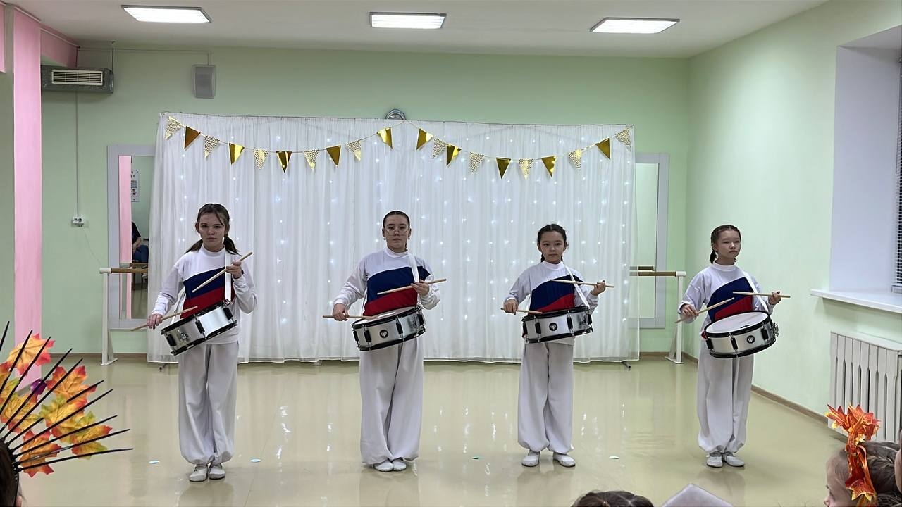 Началось оно с торжественного открытия и выступления директора Самойловой Екатерины Александровны. Началось мероприятие первым выступлением группы "Барабанщицы" и веселым танцем в подарок от малышей из группы "Росинки".