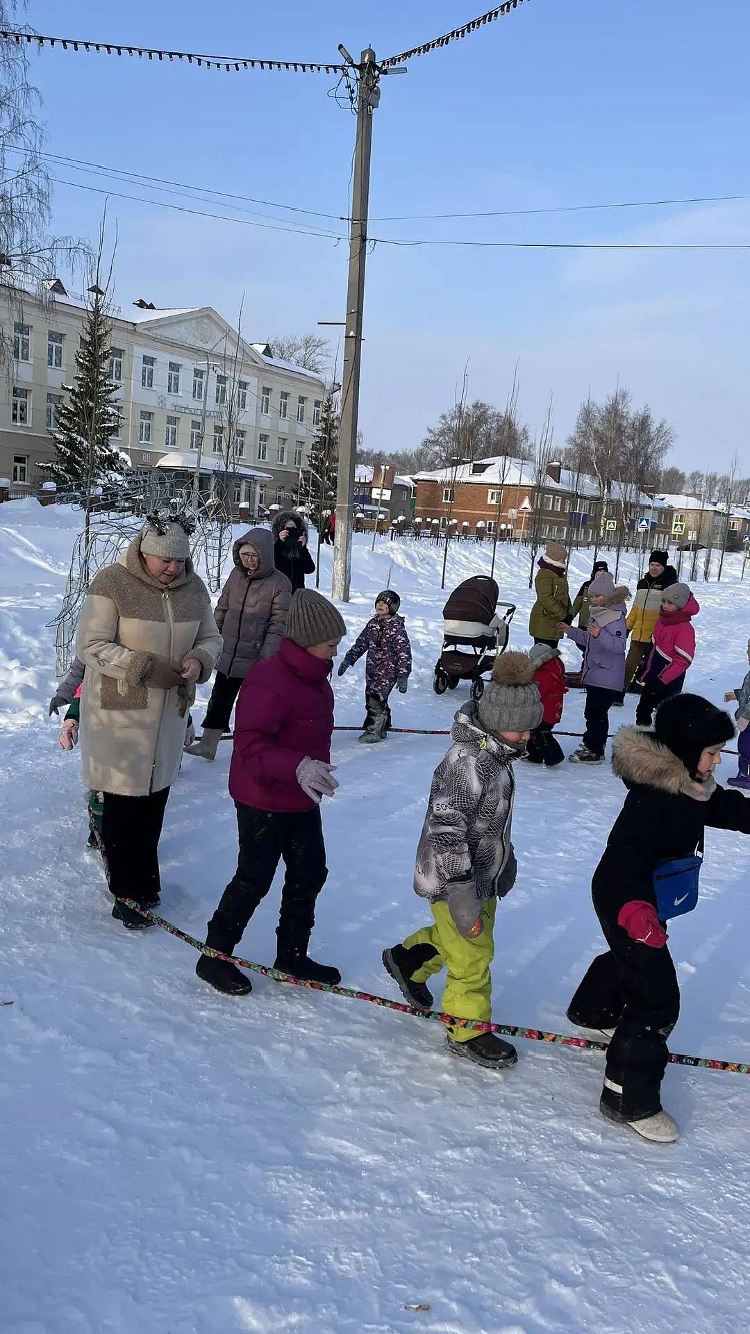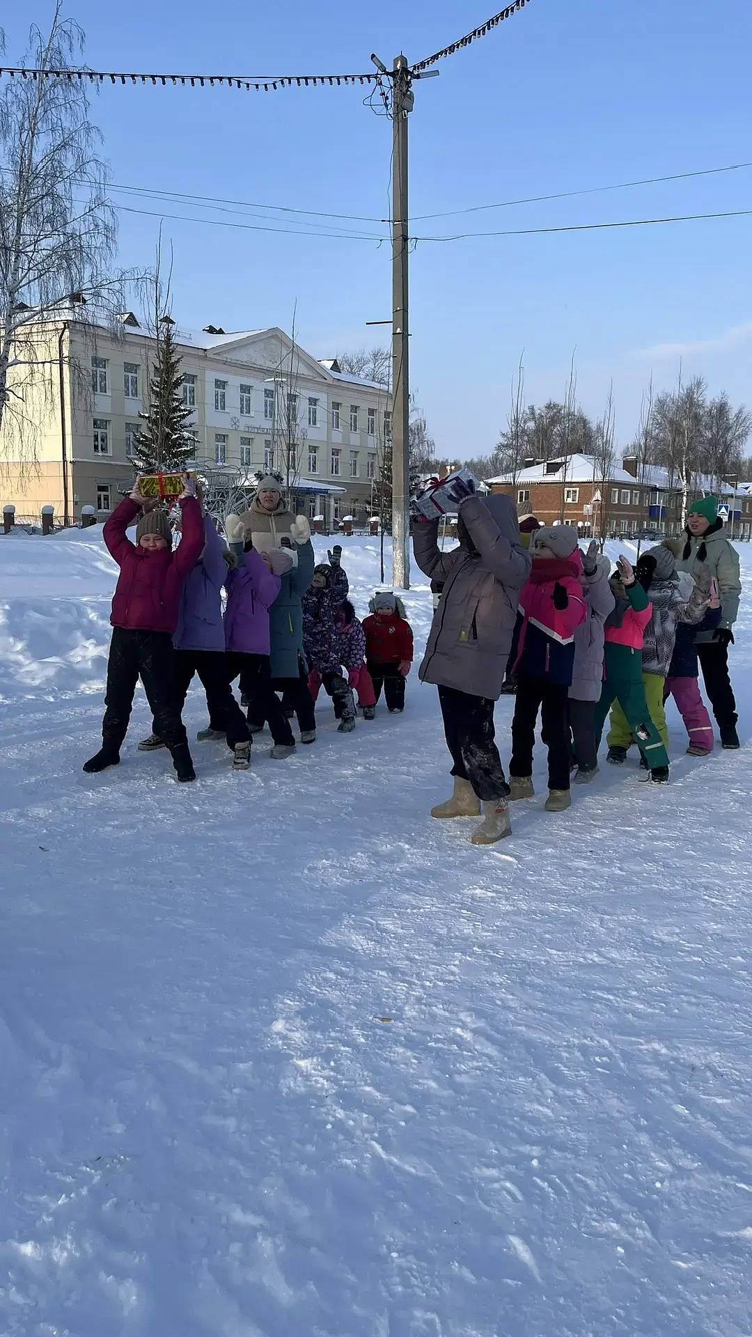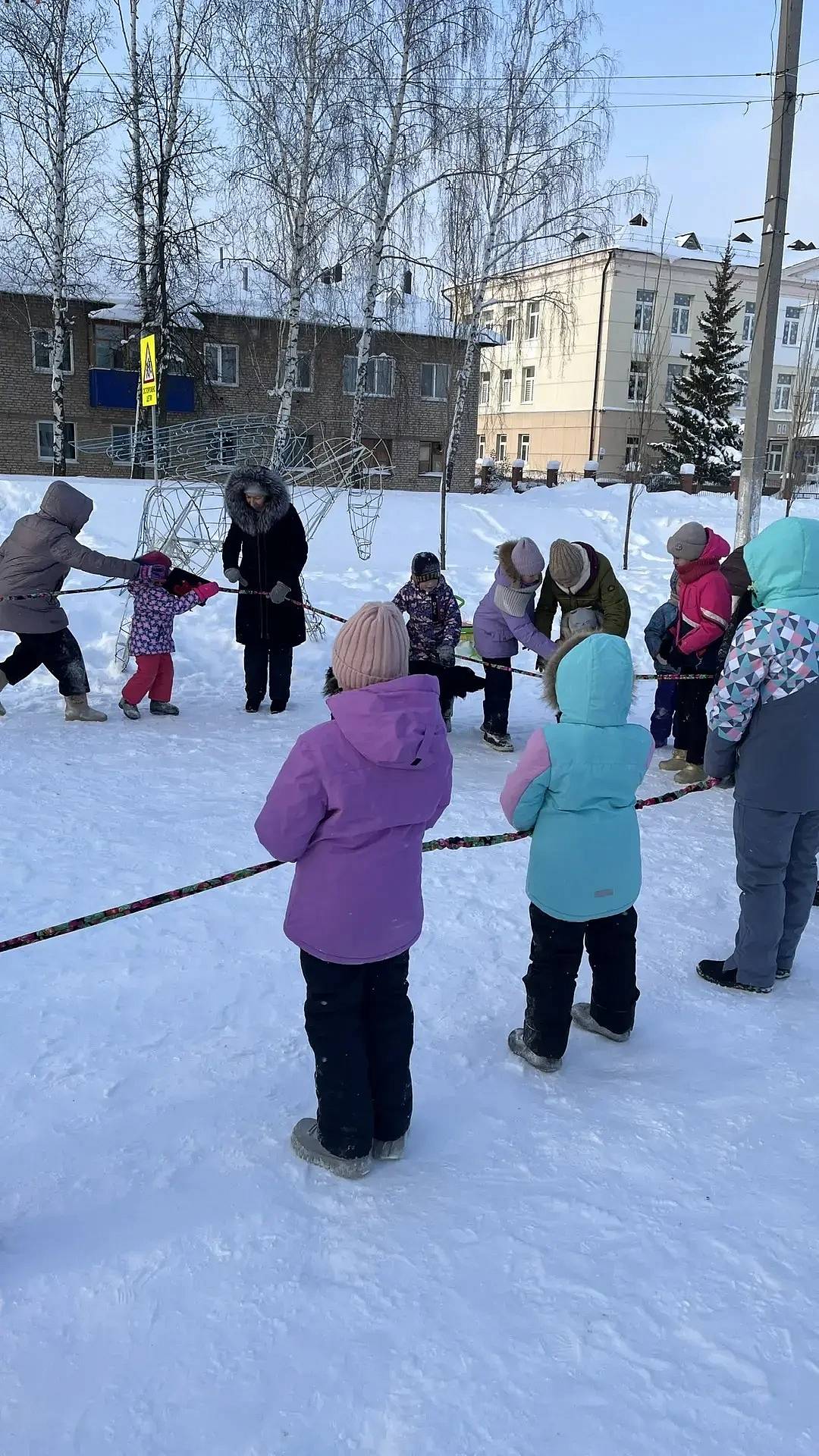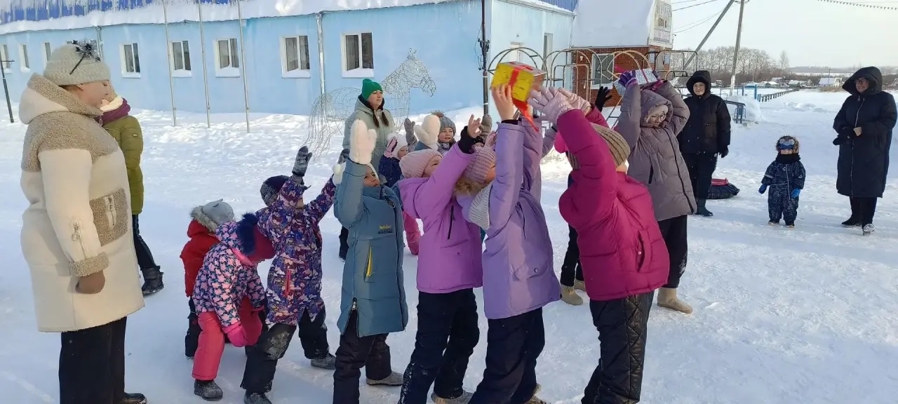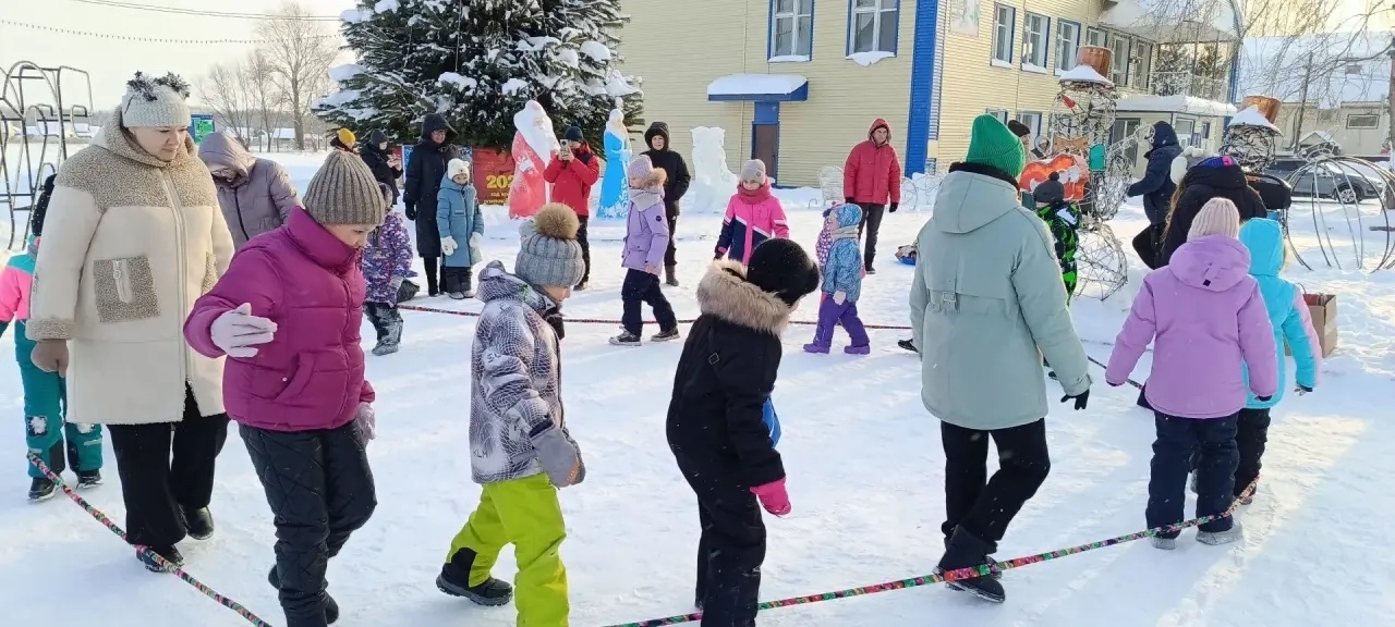 Программа началась с игры «С Новым годом!», где ребята на скорость передавали подарок друг другу. В игру «Сани» дети играли дольше всего, так как это любимая забава. В завершении был конкурс "Ледянка". Выиграл участник, который уехал дальше всех с горки. Все участники получили хороший заряд бодрости и веселого настроения, а за участие в играх каждый получил сладкий приз.