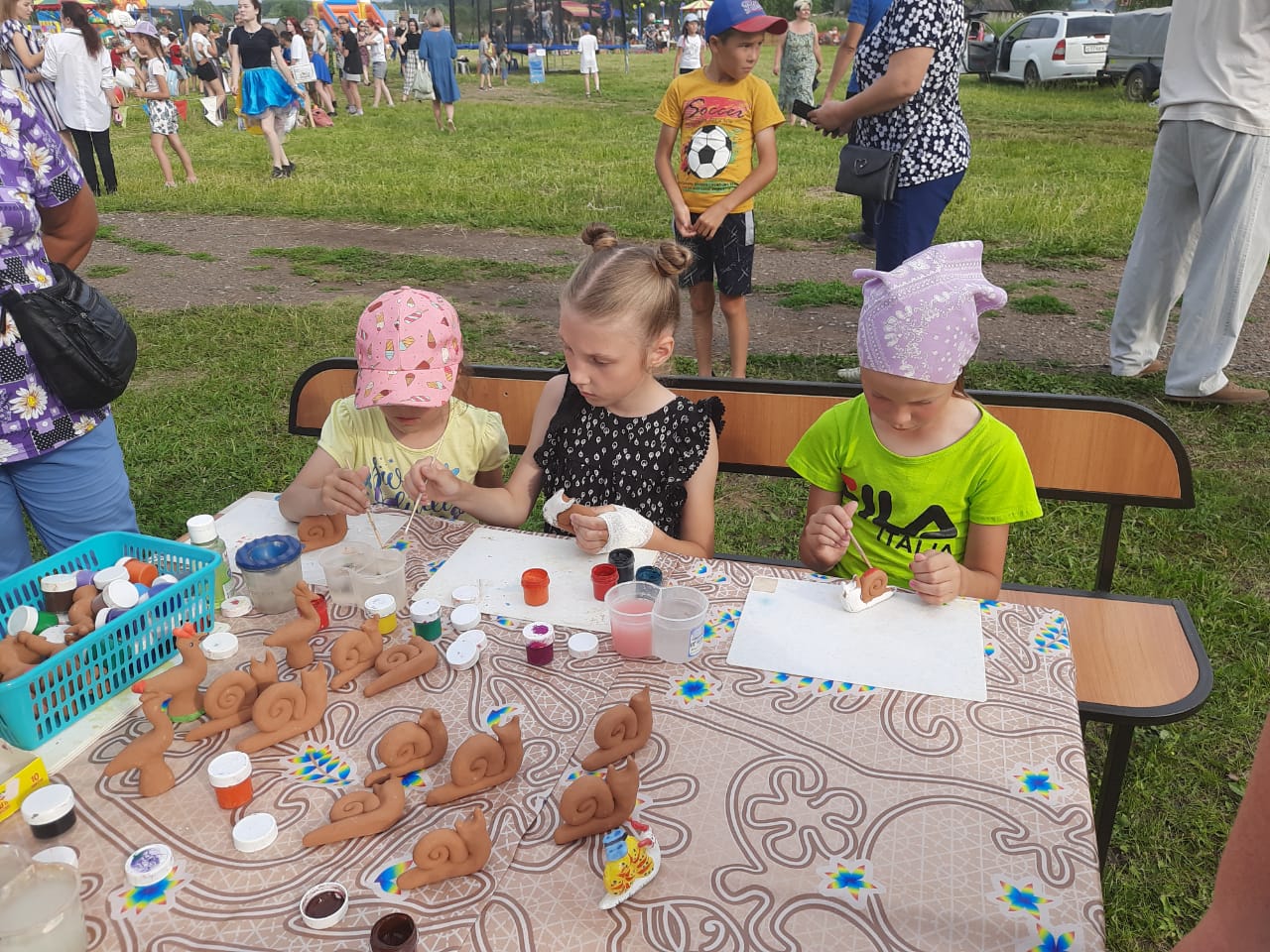 25 июня на площади за ДК "Нефтяник" села Краснохолмский прошло мероприятие, посвященное празднованию Дня молодежи. Всего работало несколько зон: спортивная аллея, арт-терраса, детская площадка. Педагог студии "Сказка" Минилбаева К.В. провела мастер-класс по росписи глиняных игрушек для всех желающих детей района. Наше увлекательное творчество имело большой успех у населения. Полюбуйтесь на этих милых улиток, ведь каждая из них уникальна!
