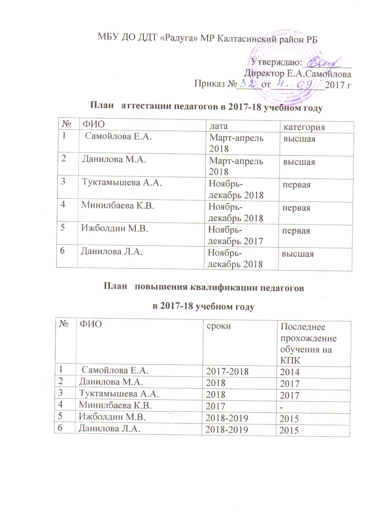 Планы аттестации и повышения квалификации педагогов на 2017-2018 учебный год